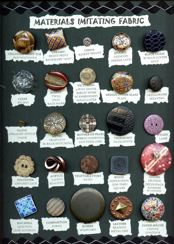 2025 National Button Society award #97, “Materials that Imitate Fabric”. Marsha Cassada