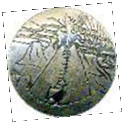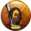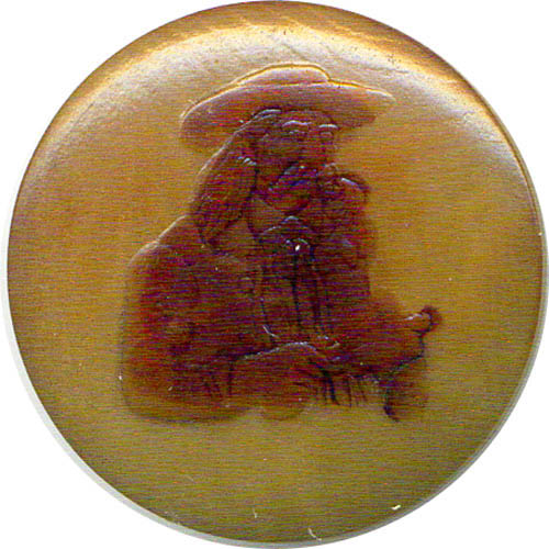 Growing up and living one’s life on the prairie can draw one to buttons showing western history. The Indian painted on this wooden button resembles Chief Joseph on the postage stamp from 1968. Chief Joseph, who lived from 1840-1904, was a famous chief of the Nez Perce tribe. The biographical information on the stamp reads: “He defended the rights of his people. He was famed for war strategy and humanity to enemies”. |