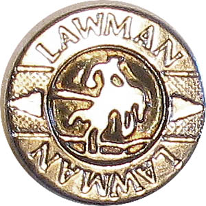 The metal button on the left is most likely for a child’s clothing. It is stamped metal. At right a riveted shanked button. Where would the Wild West have been without a lawman? Probably a lot wilder! |