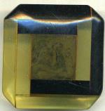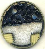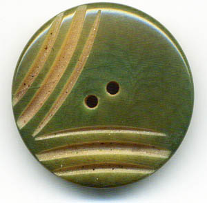 Art Deco design buttons are found in a wide variety of materials: celluloid, metal, wood, vegetable ivory and glass. Many of the glass Art Deco buttons are embellished with silver luster, which was made of platinum. |